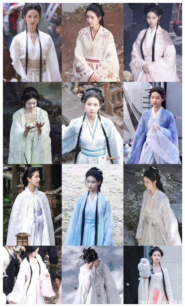 前期都是清纯小白花的妆造,仿佛不吃烟焰火的同意少女。到这几次路透妆造立场片刻变了,服装面目加深,发型也有很大改革,运转向妖女滚动。